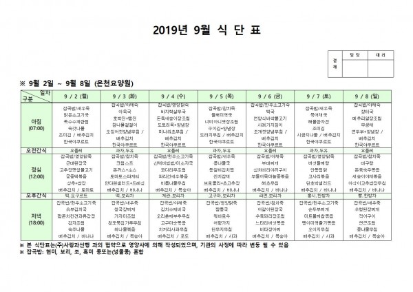 9월 첫째주 식단표 페이지 정보 작성자 은천노인복지회 작성일19-09-09 14:48 조회188,430회 댓글0건 관련링크 이전글 다음글 목록 답변 본문 9월 첫째주 식단표 이전글 다음글 목록 답변