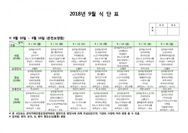 9월 둘째주 식단표 페이지 정보 작성자 은천노인복지회 작성일18-09-18 09:52 조회198,046회 댓글0건 관련링크 이전글 다음글 목록 답변 본문 9월 둘째주 식단표 이전글 다음글 목록 답변