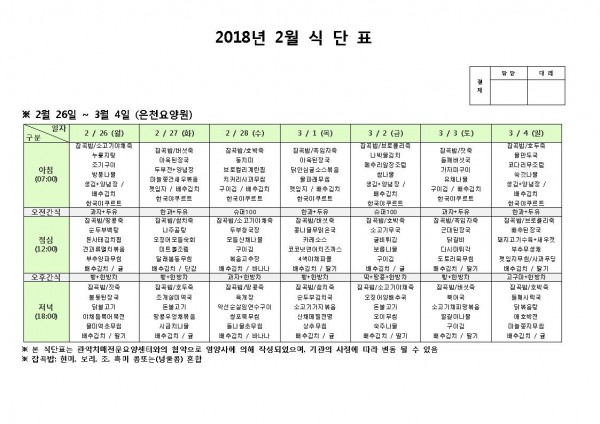 3월 첫째주 식단표 페이지 정보 작성자 은천노인복지회 작성일18-02-27 16:10 조회188,762회 댓글0건 관련링크 이전글 다음글 목록 답변 본문 3월 첫째주 식단표 이전글 다음글 목록 답변