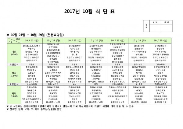 10월 넷째주 식단표 페이지 정보 작성자 은천노인복지회 작성일17-10-23 11:19 조회178,431회 댓글0건 관련링크 이전글 다음글 목록 답변 본문 10월 넷째주 식단표 이전글 다음글 목록 답변