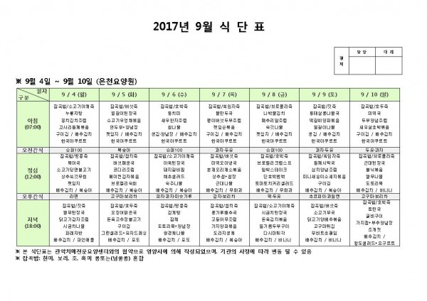 9월 첫째주 식단표 페이지 정보 작성자 은천노인복지회 작성일17-09-04 15:14 조회175,322회 댓글0건 관련링크 이전글 다음글 목록 답변 본문 9월 첫째주 식단표 이전글 다음글 목록 답변