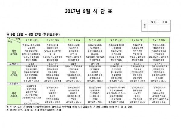 9월 둘째주 식단표 페이지 정보 작성자 은천노인복지회 작성일17-09-11 17:01 조회175,183회 댓글0건 관련링크 이전글 다음글 목록 답변 본문 9월 둘째주 식단표 이전글 다음글 목록 답변