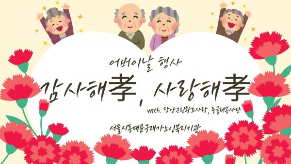 [서울시동대문구재가노인복지기관] 어버이날 기념 '감사해孝, 사랑해孝' 페이지 정보 작성자 은천노인복지회 작성일25-05-14 15:07 조회2,021회 댓글0건 관련링크 이전글 다음글 목록 답변 본문 2025년 5월 어버이날 기념으로 선물과 간식을 전달해드리며 행사를 진행하였습니다. 이전글 다음글 목록 답변