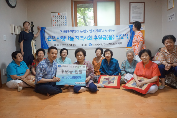 경로당 돕기 후원 페이지 정보 작성자 은천노인복지회 작성일17-01-16 16:39 조회36,803회 댓글0건 관련링크 이전글 다음글 목록 답변 본문 동대문 지역 열악한 경로당을 찾아서은천재가노인지원센터에서 후원금을 전달하였습니다.창방경로당, 전농3분회경로당, 방배경로당, 청량리현대경로당 이전글 다음글 목록 답변