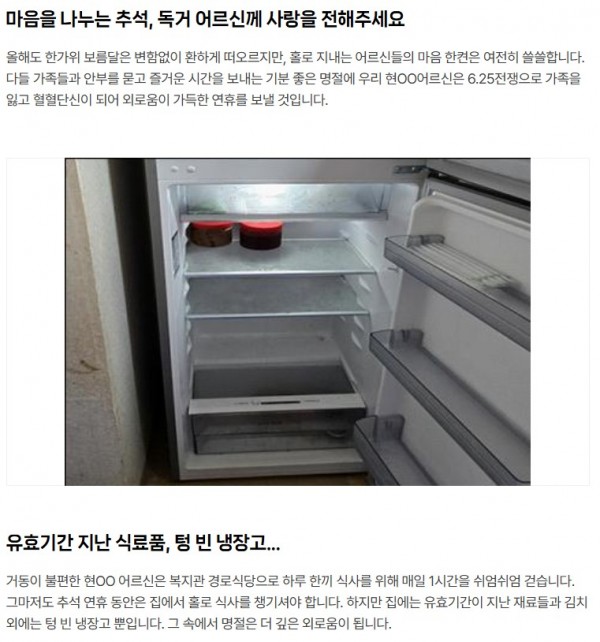 [서울시동대문구재가노인복지기관] 명절(추석) 선물 지원 관련 해피빈 모금 사업 진행
