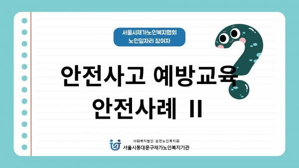 2026년 서울시재가노인복지협회에서 파견되는 노인일자리 ‘노노케어’ 참여 어르신들을 대상으로 안전교육을 진행하였습니다.